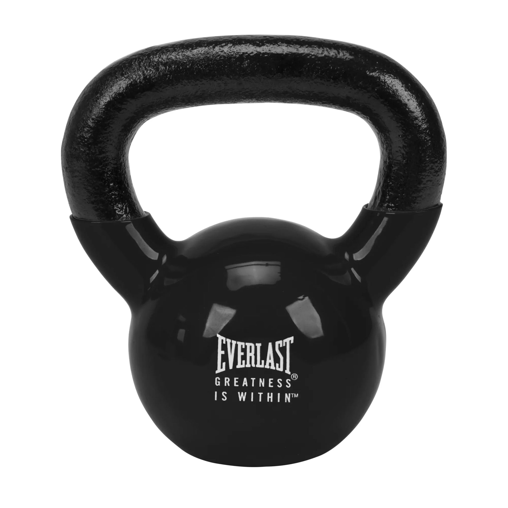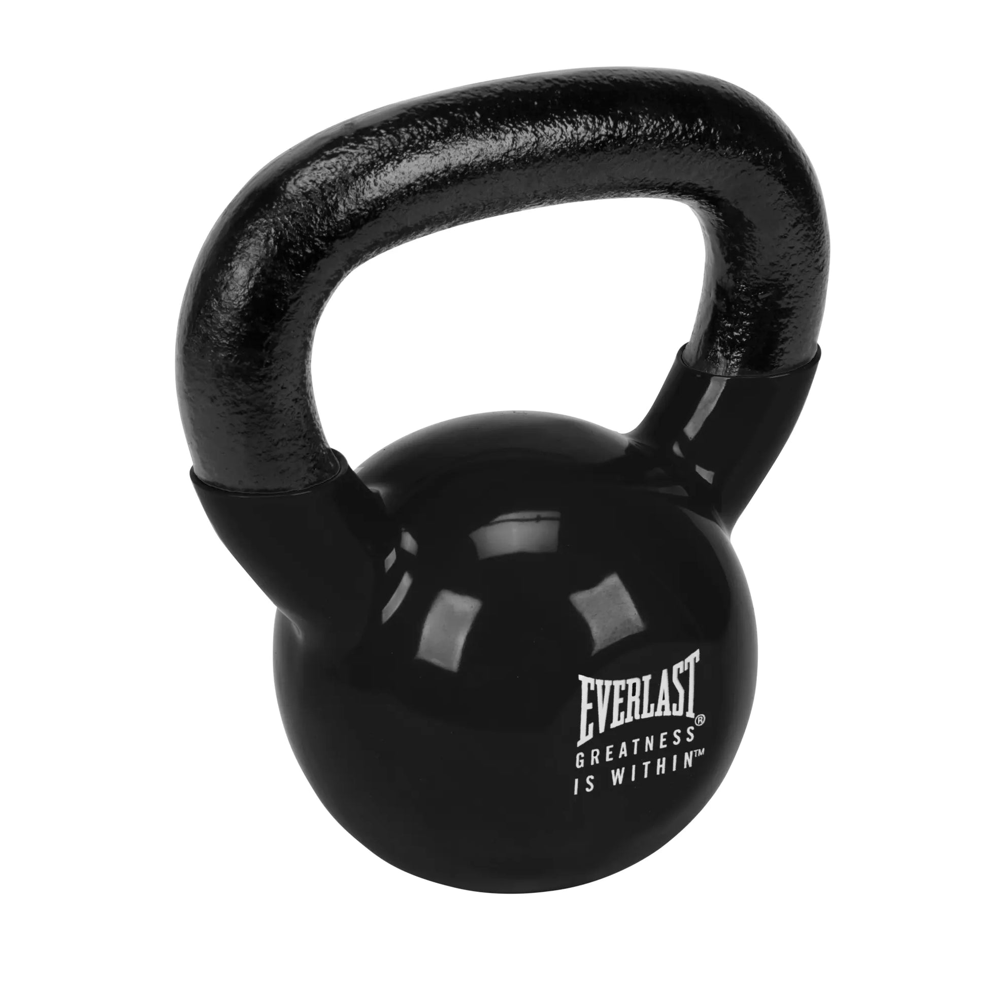 Swing your way towards your fitness goals with the Everlast 10lb Cast Iron Kettlebell. This tool is a crowd-pleaser for building strength and power. Kettlebell workouts burn fat, sculpt and tone muscles and build cardio endurance. Using cast iron construction, this kettlebell provides ultimate durability and long-lasting function for all your future workouts. Its vinyl-dipped textured body keeps any hardwood floors free from being scratched and scuffed. Start improving your balance and agility while stabilizing your core muscles with this fitness tool.