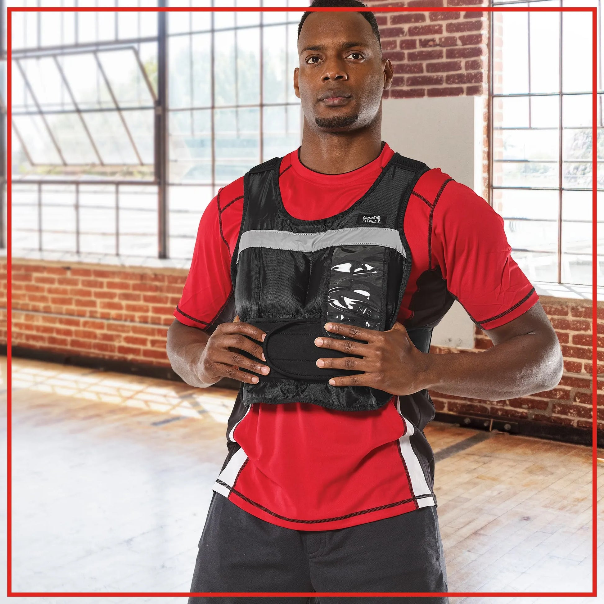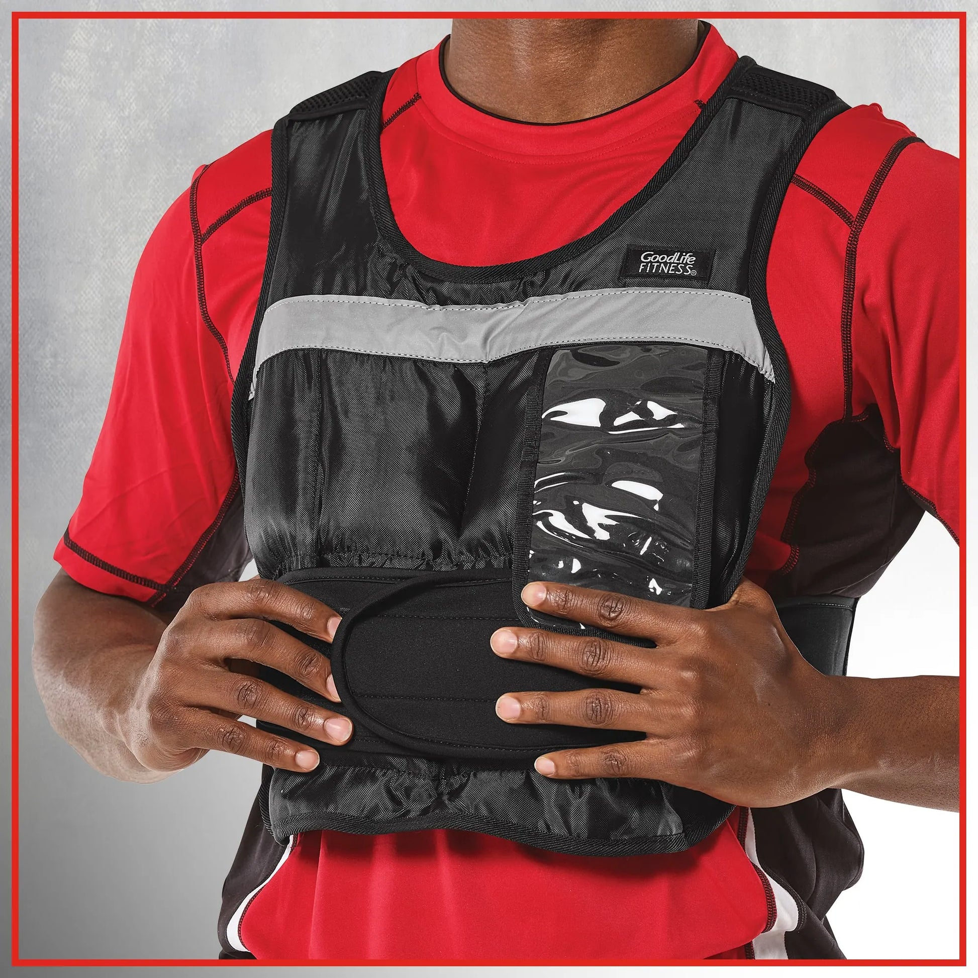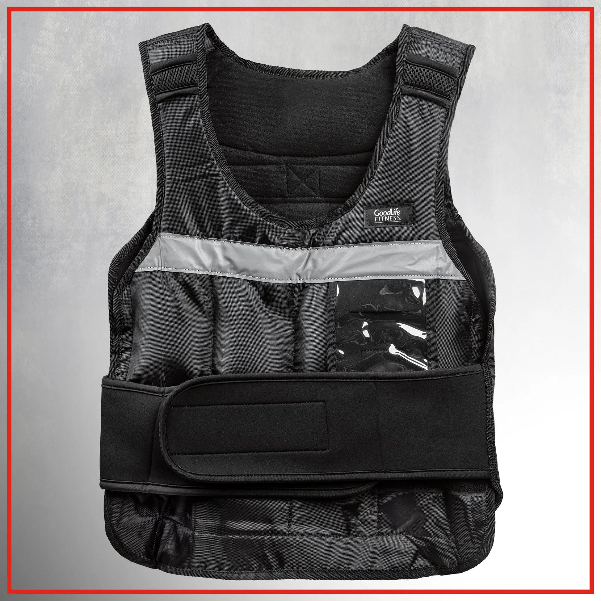 This GoodLife 20-lb (9.1kg) Weighted Vest is designed to push your endurance to the next level by adding extra resistance to your exercise routines. With 16 removable iron sand-filled weights, you can customize your workout intensity, ranging from 1.25lb to 20lb (0.57kg to 9.1kg). The padded shoulders ensure exceptional comfort, even during intense sessions. The reflective strips prioritize your safety in low-light conditions, making it perfect for outdoor activities like jogging. Tailor the vest to your liking with the adjustable grip strip closure, ensuring a snug and comfortable fit. The convenient 3.5" x 6.5" (8.90cmX16.51cm) pocket provides easy access and visibility for your smartphone, keeping you connected while you work up a sweat.