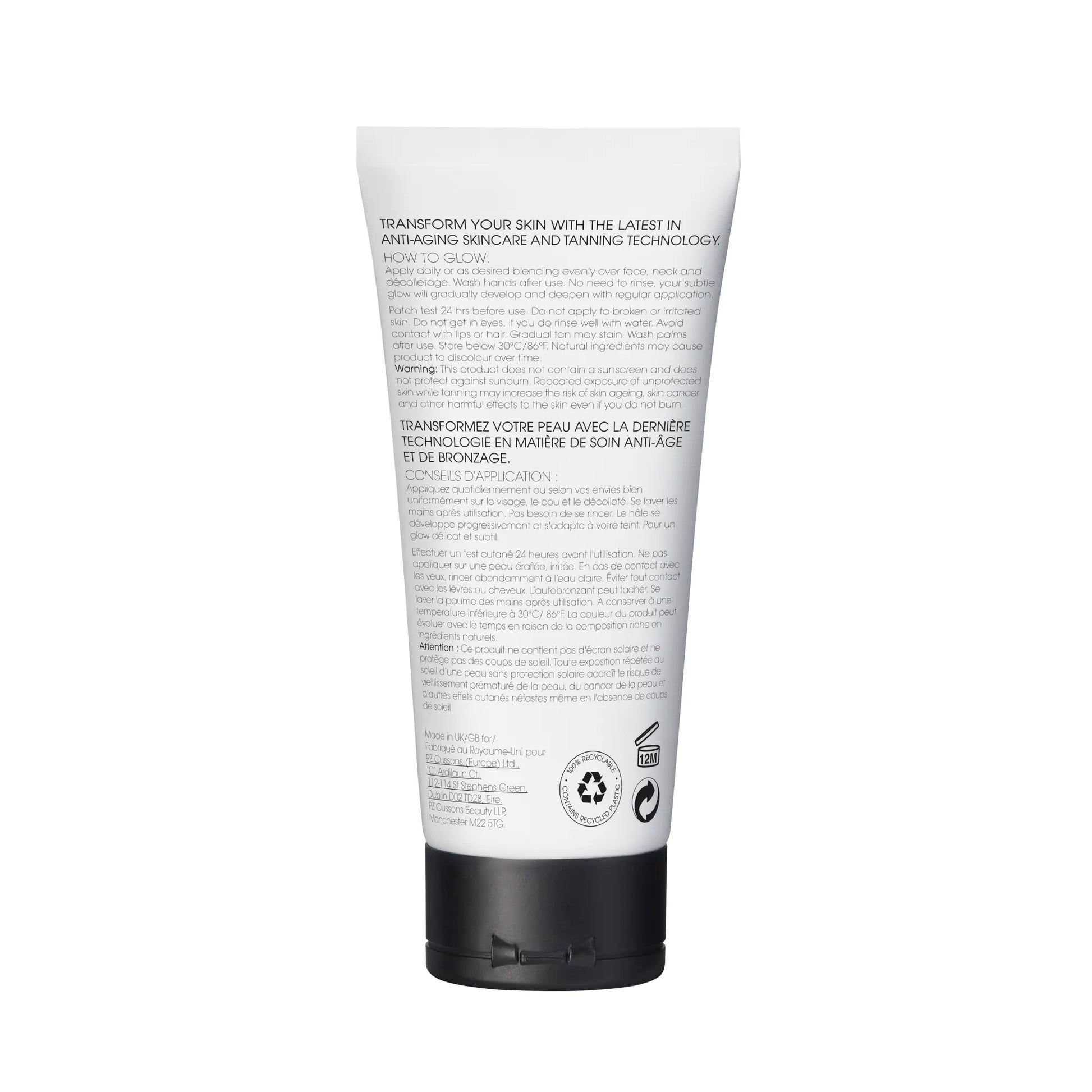 Gradually build a natural, sunkissed glow with this easy to apply daily youth-boosting moisturizer. Subtly tinted to instantly boost complexion this hybrid moisturizer gradually builds as you re-apply to create your desired tan with 72 hours of hydration. Made with dual molecular weight Hyaluronic Acid and an antioxidant blend of upcycled Blueberry and Raspberry seed oils, this high-performing lightweight moisturizer helps to smooth away fine lines and hydrates for up to 72hrs. With additional Blue Light protection to shield skin from digital pollution-induced ageing. Dermatologically approved and non-comedogenic envelop your skin with this skincare-infused tanning moisturizer. Re-apply daily to build your desired glow. Suitable for all skin tones. Best for those looking for a subtle glow they can add into their daily routine, maintain their face tan or are new to tanning. - A light to medium gradual golden glow - Subtly tinted moisturizer - Dermatologically approved and non-comedogenic - Antiaging and blue-light protection - Streak-free and hydrating for up to 72 hours - New lighter, fast-absorbing and and non-sticky fake tan - Reapply daily as desired to build your colour. - Vegan-friendly, 100% natural tanning active and cruelty-free - 95% natural ingredients - Made with recycled plastic and 100% recyclable - Suitable for sensitive skin